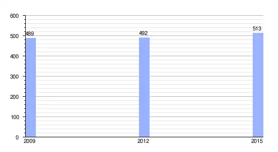 | Gráfica de evolución demográfica de Damé entre 2009 y 2015 |