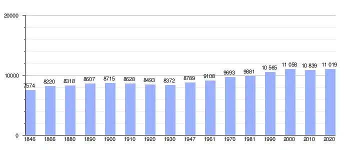 | Gráfica de evolución demográfica de Damme entre 1846 y 2020 |
