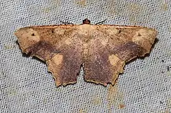 Es una polilla con el cuerpo de color leonado pálido apagado. La cabeza y el borde anterior del tórax son ferruginosos. El abdomen es violáceo cineroso hacia la punta. La combinación de márgenes de alas en ángulo y la facies de color marrón rosado con manchas pálidas son características diagnósticas de la especie.[4] Las alas cuentan con motas negras. Las alas anteriores alrededor del ángulo interior y casi la totalidad de las alas posteriores cuentan con tintes violáceos cinerosos con líneas ferruginosas. El fleco es blanquecino cineroso. Existe una variedad de la polilla que cuenta con una mancha testácea, tipo concha, cerca de la parte exterior de la costa de cada ala y otra más pequeña cerca de la costa interior de las alas anteriores.[5]