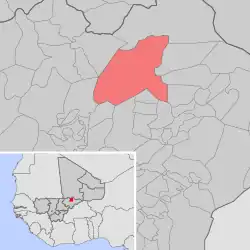 Se encuentra ubicada en el centro-este del país, cerca de la frontera con Burkina Faso y con la región de Tombuctú.