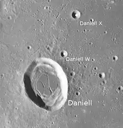 Daniell y dos de sus cráteres satélites, W y X | ||