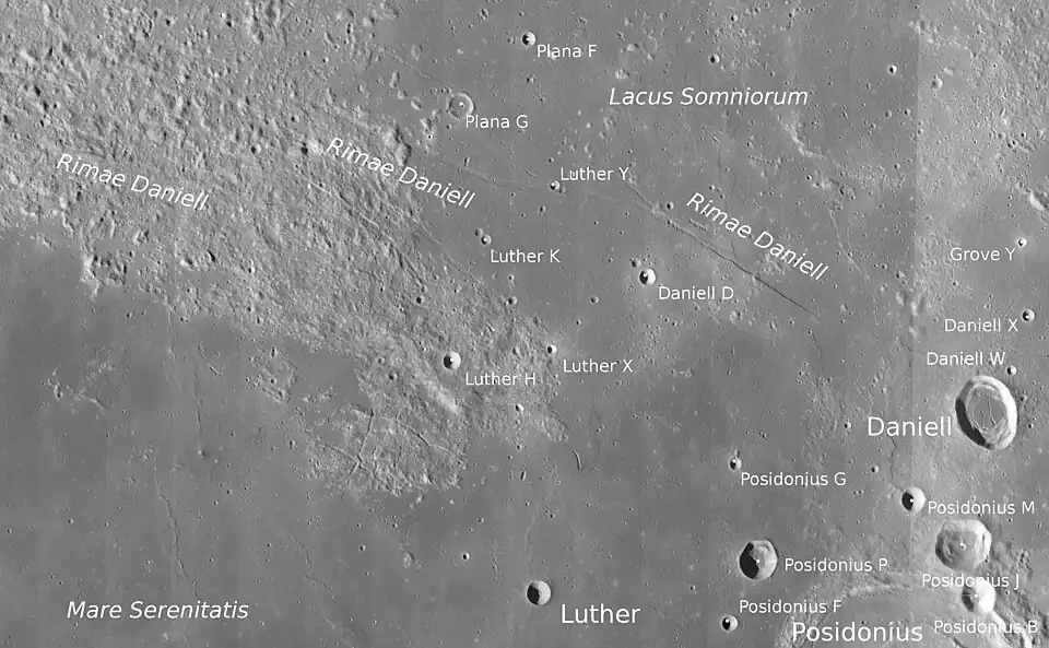 Por convención estos elementos son identificados en los mapas lunares poniendo la letra en el lado del punto medio del cráter que está más cerca de Daniell.