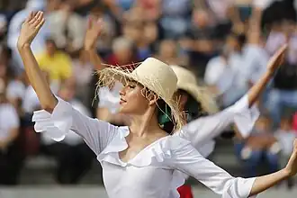 - La punta talón: cuando los bailarines dejan su lugar inicial y empieza el hombre a bailar alrededor de la pareja mientras toca el suelo con la punta del pie y el otro con el talón.