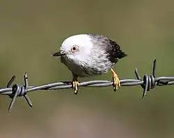 Es un pájaro pequeño que mide unos 10–11 cm de largo. Su aspecto varía mucho según las subespecies. Su píleo y cabeza pueden ser blancas, grises o negras y su cuerpo es blanquecino o gris a menudo con bandas negras y grises. Posee alas negras con una ancha franja blanca o canela. El iris es naranja oscuro, sus patas son naranja-amarillento. El pico es anaranjado con un extremo negro que se puede extender hasta su base. La coloración depende de la subespecie.