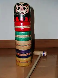 El Daruma otoshi (caída Daruma) es otro juguete popular japonés. Consiste en una pila de cinco discos de espesor y una figura de Daruma que se coloca en la parte superior, los cuales están hechos por lo general de madera. El objetivo del juego es eliminar con un mazo cada uno de los discos que comienzan con la parte inferior hasta que sólo quede la figura de Daruma. Al igual que el Daruma autoadrizable, este juguete también simboliza la concentración, la paciencia y la resistencia atribuido a Bodhidharma.