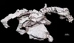 El espécimen holotipo, YLSNHM 01002, consta de un cráneo, cuatro vértebras dorsales, costillas, cuatro vértebras caudales distales rodeadas por tendones osificados (probablemente indicativo de la presencia de una maza en la cola), cinturas pectorales incompletas, el brazo izquierdo (incluida la cabeza humeral, el radio y cúbito distales), un ilion izquierdo fragmentario, un fémur derecho distal, y varios osteodermos.[1]