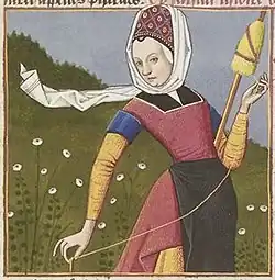 - 44. Pánfila fue hija de Platea, y nacida en la Isla de Cos. Se dice que fue la primera persona en hilar la seda, una sustancia natural producida por varios insectos. También inventó la técnica de preparar un hilo de algodón para hilar en una rueca. Pánfila desarrolló la técnica de tejer a partir del hilo de algodón.[25][26]