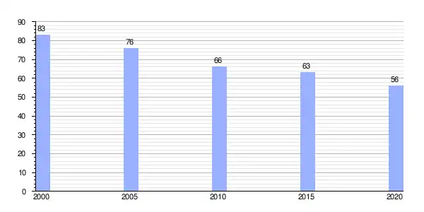 | Gráfica de evolución demográfica de Deade entre 2000 y 2020 |