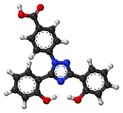 El Deferasirox (comercializado como Exjade,[1] Desirox, Defrijet, Desifer, Rasiroxpine y Jadenu) es un quelante oral de hierro. Se usa principalmente para reducir la sobrecarga crónica de hierro en pacientes que reciben transfusiones de sangre a largo plazo por afecciones como la beta-talasemia y otras anemias crónicas.[2][3] Es el primer medicamento oral aprobado en los Estados Unidos para este propósito.