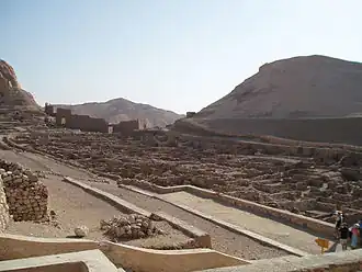 ![]() Set Maat "El lugar de la Verdad": ruinas del poblado de artesanos, actualmente Deir el-Medina. | ||