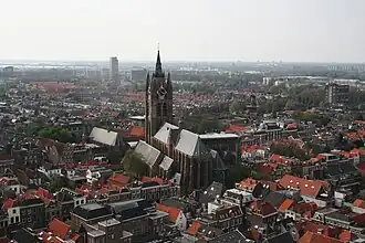 Iglesia vieja de Delft (Oude Kerk)Oude Kerk (la iglesia Vieja) data de 1246, y es la iglesia más antigua de Delft. Entre 1325 y 1350 se le añadió la torre de planta cuadrada. Cabe destacar que dicha torre está sensiblemente inclinada debido a la poca firmeza del terreno sobre el que se asienta. Con 75 metros de altura, actualmente presenta una desviación de 1,96 metros de la vertical.