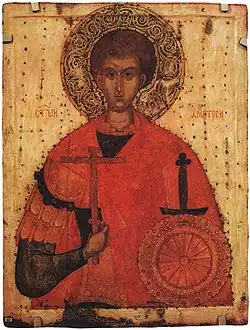 Demetrio de Tesalónica (en griego antiguo: Ἅγιος Δημήτριος τῆς Θεσσαλονίκης) es un mártir cristiano que tuvo su martirio en Sirmio (la actual Sremska Mitrovica, en Serbia)[1] a principios de siglo IV, hacia el año 306. Al igual que san Artemio de Antioquía, san Jorge y otros santos de oriente recibe el título de "megalomártir", que quiere decir "gran mártir", debido a su puesto militar encumbrado.[2]
