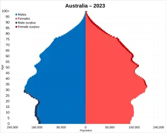 ![]() Pirámide poblacional de Australia en 2023. | ||