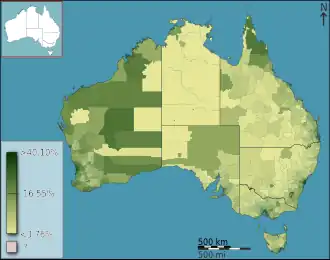 - ↑ De cualquier ascendencia. Incluye a las personas que se identifican como aborígenes australianos o isleños del estrecho de Torres. La identificación indígena es independiente de la pregunta sobre ascendencia en el censo australiano y las personas que se identifican como aborígenes o isleños del estrecho de Torres pueden identificar cualquier ascendencia.