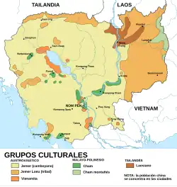 La población de Camboya ha sido bastante homogénea. En 1962 cerca del 80 % de la población era Jemer étnico. El 20 % restante incluía chinos, vietnamitas, cham, Jemer Loeu y europeos. Antes de 1981, como resultado de la repatriación vietnamita de 1970 a 1971 y las muertes y la emigración de una gran cantidad de cham y de Jemer chino, los Khner étnicos fueron cerca de 90 % o más de la población.