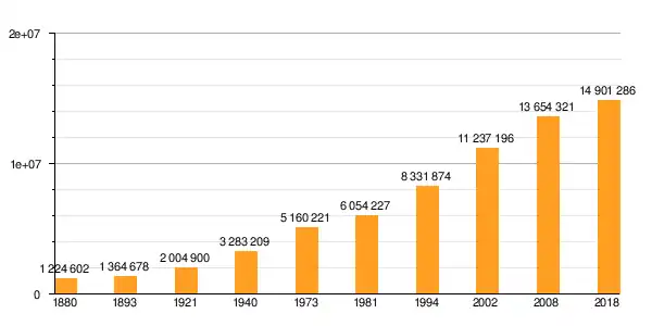 17 843 132 habitantes (2024 est.), siendo los datos más elevados históricos.[3]