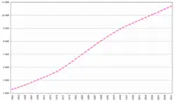 | 2000 | 9,552,500 | 163,089 | 53,700 | 109,389 | 17.1 | 5.6 | 11.4 | 0.981 | 2.08 |