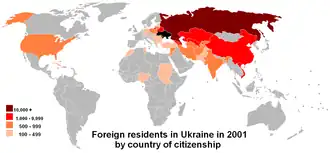 Los rusos constituyen la minoría más grande en Ucrania, así como la comunidad más grande de la diáspora rusa en el mundo. En el censo ucraniano de 2001, 8 334 100 personas se identificaron como rusos étnicos (17,3 % de la población total).[6]
