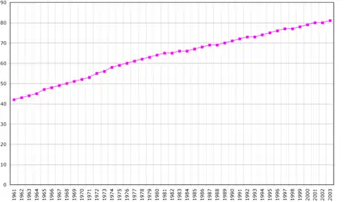 - Tasa de crecimiento de la población: 0,43% (2005 est.)