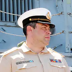 ![]() Denís Berezovsky a bordo del USS Jason Dunham durante los Ejercicios multinacionales Sea Breeze 2012 (SB12) | ||