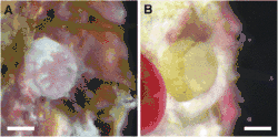 El color del tejido del pólipo es verde oliva o marrón grisáceo.