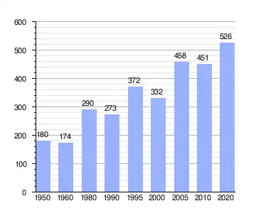 Población de los censos y conteos del Instituto Nacional de Estadística y Geografía (INEGI).[7] |