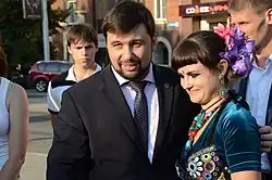 Denís Vladímirovich Pushilin (en ruso: Дени́с Влади́мирович Пуши́лин, en ucraniano: Дени́с Володи́мирович Пуши́лін) (Makiivka, Lugansk, RSS de Ucrania, 9 de mayo de 1981)[2] es un político ruso de origen ucraniano, exvicepresidente del Soviét Popular de la autoproclamada República Popular de Donetsk, que declaró su independencia de Ucrania el 11 de mayo de 2014.[3][4] Es el actual líder de la República Popular de Donetsk desde noviembre de 2018, tras la muerte de Aleksandr Zajárchenko. También fue primer ministro entre septiembre y octubre de ese año.