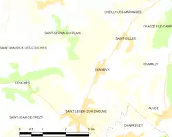Dennevy es una población y comuna francesa, en la región de Borgoña, departamento de Saona y Loira, en el distrito de Chalon-sur-Saône y cantón de Chagny.