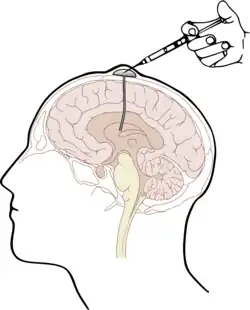 - ↑ Optimal use of the Ommaya reservoir in clinical oncology. Autores: Sundaresan N, Suite ND. Doctors Hospital, Columbia University College of Physicians and Surgeons.Oncology (Williston Park). 1989 Dec 3