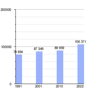 Cuenta con 106 371 habitantes (Indec, 2022), lo que representa un incremento promedio anual del 1.5% frente a los 89 959 habitantes (Indec, 2010) del censo anterior.[5]