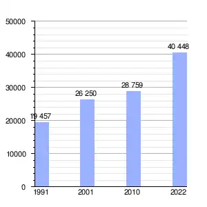 Cuenta con 40 448 habitantes (Indec, 2022), lo que representa un incremento promedio anual del 3% frente a los 28 759 habitantes (Indec, 2010) del censo anterior.[10]