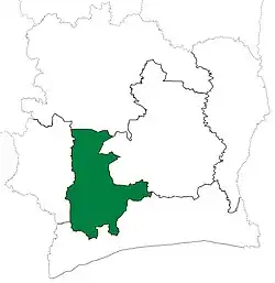 ![]() Localización del departamento del Centro-Oeste en Costa de Marfil | ||||||||||||||||||||||||||||