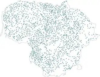 ![]() Ubicaciones de los koljoses en Lituania (en torno a 2.000). | ||