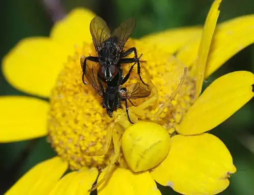 - ↑ Vieira, Camila; Ramires, Eduardo N.; Vasconcellos-Neto, João; Poppi, Ronei J.; Romero, Gustavo Q. (2017). «"Crab Spider Lures Prey In Flowerless Neighborhoods"». Scientific Reports. PMID 28835630. doi:10.1038/s41598-017-09456-y.