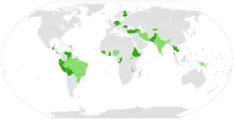 Hasta 2011, los siguientes diez países habían adoptado una ley marco sobre seguridad alimentaria o derecho a la alimentación: Argentina, Bolivia, Brasil, Ecuador, El Salvador, Guatemala, Indonesia, Nicaragua, Perú y Venezuela.[33] Además, en 2011, los nueve países siguientes estaban redactando una ley marco sobre seguridad alimentaria o derecho a la alimentación: Honduras, India, Malaui, México, Mozambique, Paraguay, Sudáfrica, Tanzania y Uganda. Finalmente, El Salvador, Nicaragua y Perú estaban elaborando borradores para actualizar, reemplazar o fortalecer su ley marco.