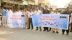 El derecho a la salud es el derecho económico, social y cultural a un nivel mínimo universal de salud al que tienen derecho todas las personas. El concepto de derecho a la salud se ha enumerado en acuerdos internacionales como la Declaración Universal de Derechos Humanos, el Pacto Internacional de Derechos Económicos, Sociales y Culturales y la Convención sobre los Derechos de las Personas con Discapacidad. Existe un debate sobre la interpretación y la aplicación del derecho a la salud debido a consideraciones como la definición de la salud, los derechos mínimos que abarca el derecho a la salud y las instituciones responsables de garantizar a las personas del país el derecho a la salud.