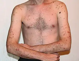 ![]() Una persona con trastorno de excoriación que presenta múltiples escoriaciones. | ||