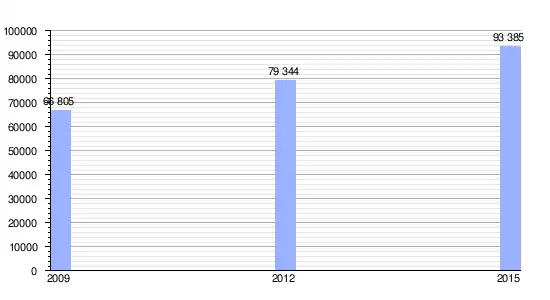 | Gráfica de evolución demográfica de Des Vases entre 2009 y 2015 |