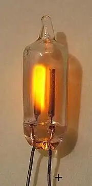 Es el tipo más sencillo de descarga luminiscente de corriente continua. En su forma básica, consiste en dos electrodos en una célula mantenidos a baja presión (0,1-10 torr; aproximadamente 1 / 10000a a 1 / 100o de la presión atmosférica). La célula está normalmente llena de neón, pero también se pueden utilizar otros gases. Se aplica un potencial eléctrico de varios cientos de voltios entre los dos electrodos.