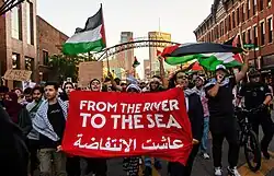 «Desde el río hasta el mar» (en árabe: من النهر إلى البحر min alnahr 'iilaa albahr) es una consigna política asociada con el nacionalismo palestino. Se refiere geográficamente al área situada entre el río Jordán y el mar Mediterráneo, que incluye: Israel, Cisjordania y la Franja de Gaza.[1] Se suele combinar con las frases: «... Palestina vencerá»[2] (que rima en castellano) y «... Palestina será libre» (que rima en inglés).