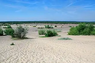 El aspecto de un paisaje del desierto se ha creado desde la Edad Media, como un efecto accidental de la minería (zinc, plata, carbón), pero la estructura geológica específica ha sido de gran importancia -el espesor promedio de la capa de arena es de aproximadamente 40 metros (máximo 70 metros), lo que hizo el ayuno y el drenaje profundo muy fácil. En los años recientes las arenas han empezado a disminuir. El fenómeno de los espejismos se da allí.