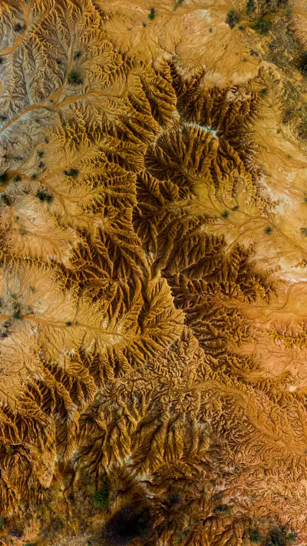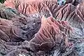 La zona está muy erosionada y cruzada por cañones secos que se desarrollan transitoriamente en los meses en el invierno. Estas misteriosas formas se crean sobre superficies arcillosas, generando cárcavas laberínticas que pueden alcanzar hasta 20 metros de profundidad.