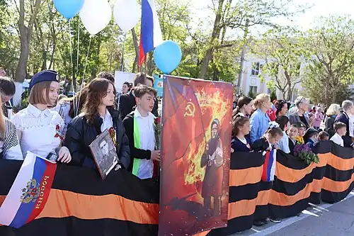 - ↑ "Abuela con bandera de la URSS" maldice al ejército ruso porque destruyó su casa , Pravda.