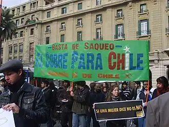 ![]() Estudiantes chilenos reclamando una «renacionalización» del cobre. | |||||