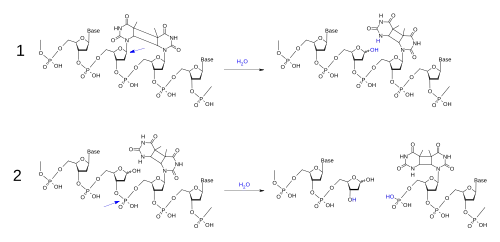 El ADN expuesto a radiación ultravioleta sufre varios tipos de alteraciones químicas que pueden alterar de forma inesperada la información que contiene. Uno de los tipos de daño más comunes debido a la exposición UV es la formación de dímeros de bases pirimidínicas (dímeros ciclobutano pirimidina o CPD, por sus siglas en inglés), estos dímeros pueden ser de tipo citosina<>citosina; citosina<>timina o timina<>timina.