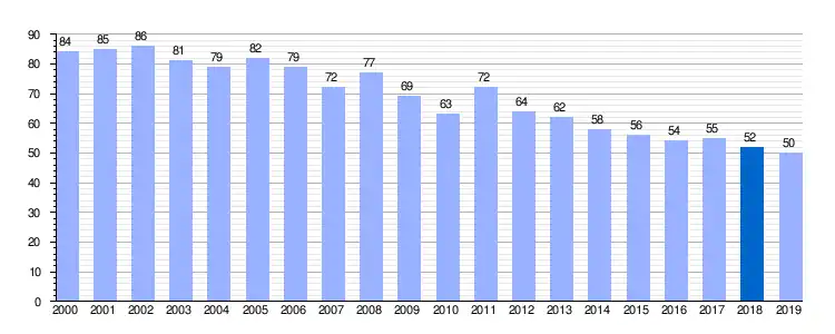 | Gráfica de evolución demográfica de Devesa de Curueño entre 2000 y 2019 |