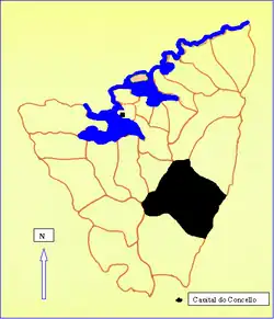 - ↑ Miralbes Bedera, Rosario; de Torres Luna, María Pilar; Rodríguez Martínez-Conde, Rafael (1979). «Ortigueira». Mapa de límites de las parroquias de Galicia. Santiago de Compostela: Imprenta Paredes. p. 19. ISBN 8460014142.