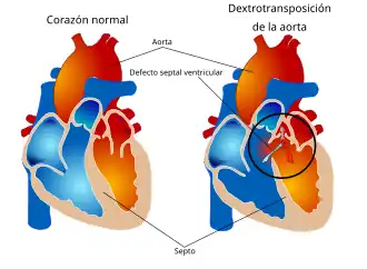 ![]() Diagrama de un corazón normal y otro sufriendo una dextraposición de la aorta. | ||