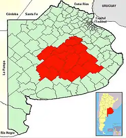 ![]() Mapa de la diócesis de Azul, en rojo | ||