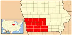 La diócesis tiene 32 235 km² y extiende su jurisdicción sobre los fieles católicos de rito latino residentes en 23 condados del estado de Iowa: Adair, Adams, Audubon, Cass, Clarke, Dallas, Decatur, Fremont, Guthrie, Harrison, Lucas, Madison, Mills, Montgomery, Page, Polk, Pottawattamie, Ringgold, Shelby, Taylor, Union, Warren y Wayne.